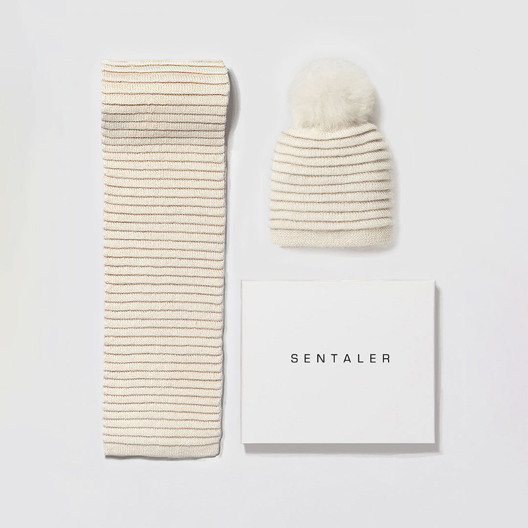 Baby Alpaca is known for being extremely soft to the touch and incredibly warm. The alpaca fibres contain microscopic air pockets that act like natural thermal insulators, keeping you warm during the fall and winter seasons. Complete the look with the full ribbed accessory set.
