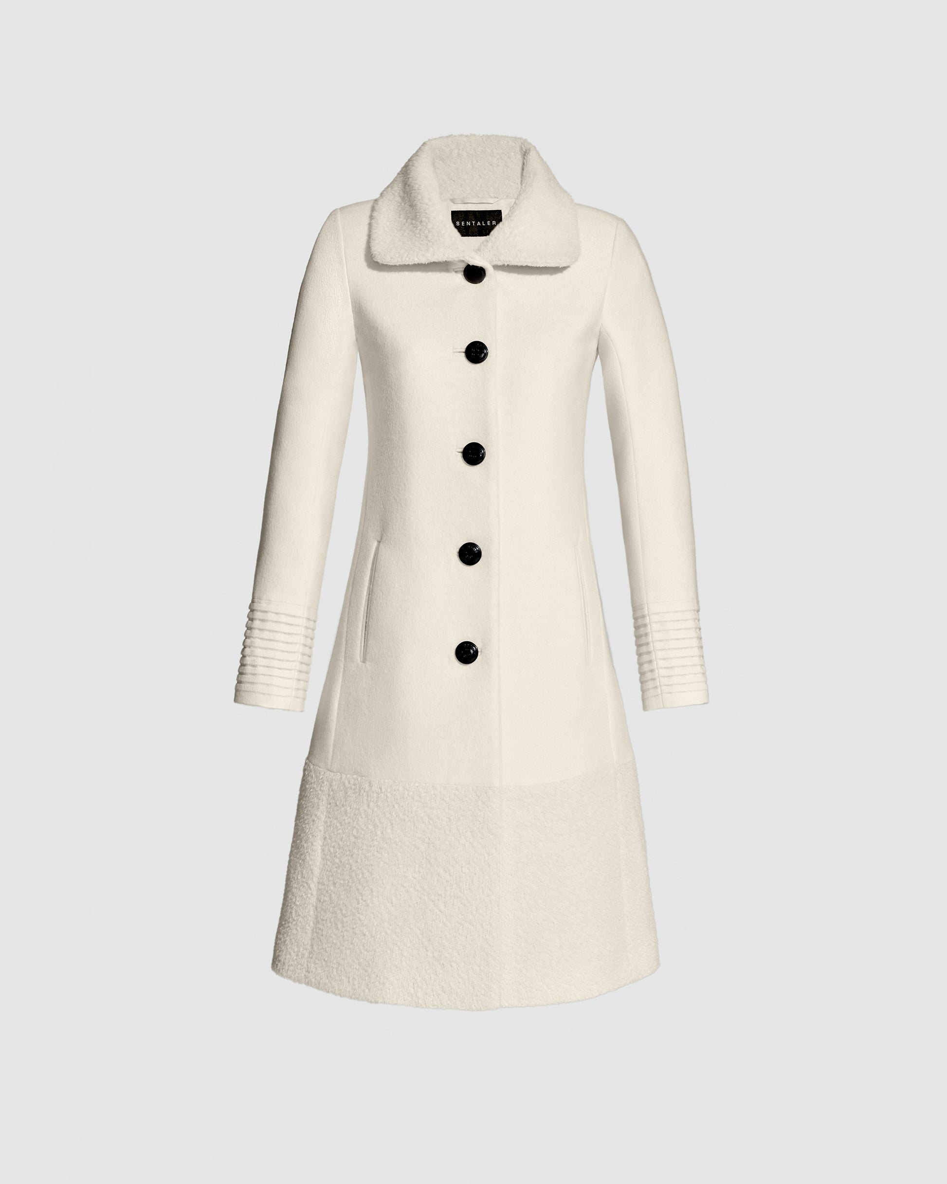 Baby Alpaca Empire Waist A-line Coat with Bouclé Alpaca Collar and Trim