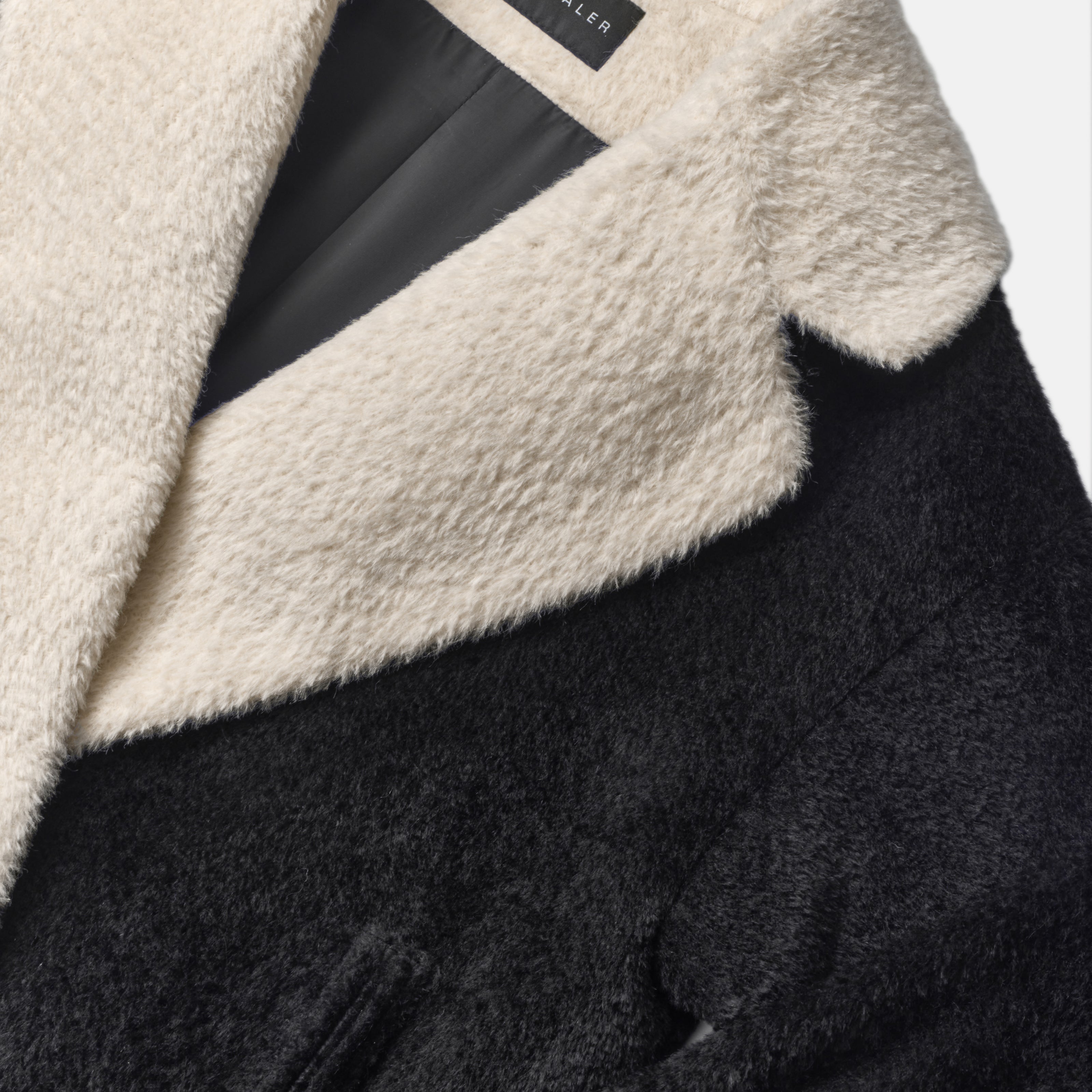 Short oversized coat crafted from textured Bouclé Suri Alpaca wool, known for supreme warmth and natural thermal insulation. This timeless topper is designed with a large notched collar, dropped shoulders, and SENTALER's signature ribbed detail at the sleeve cuffs.