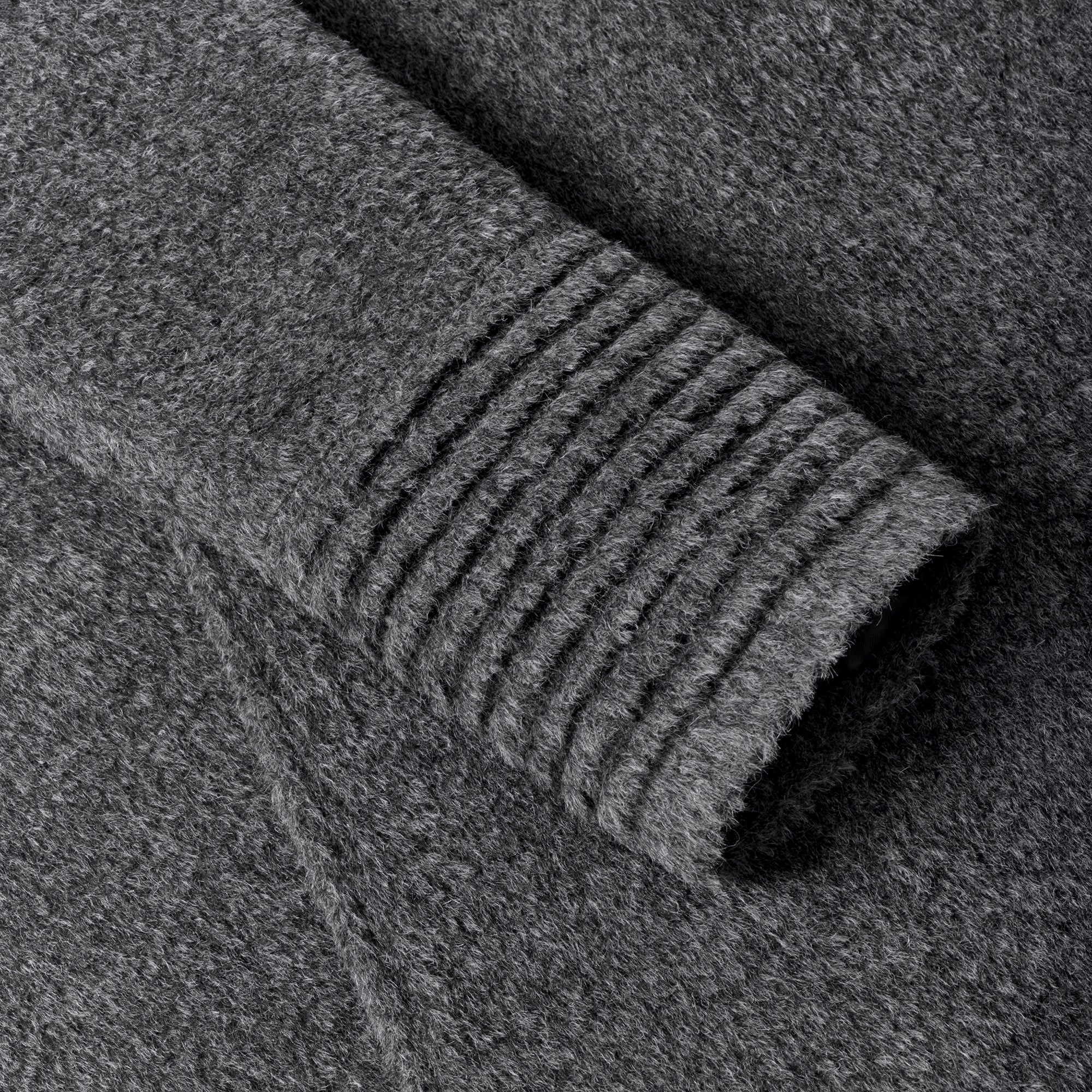 Full length coat crafted from textured Bouclé Suri Alpaca wool, known for its supreme warmth and natural thermal insulation. This cold weather staple features an optional belt, SENTALER's signature ribbed detail at the sleeve cuffs, and a functional oversized hood that can also be worn as a popped cowl neck or draped wide across the shoulders.