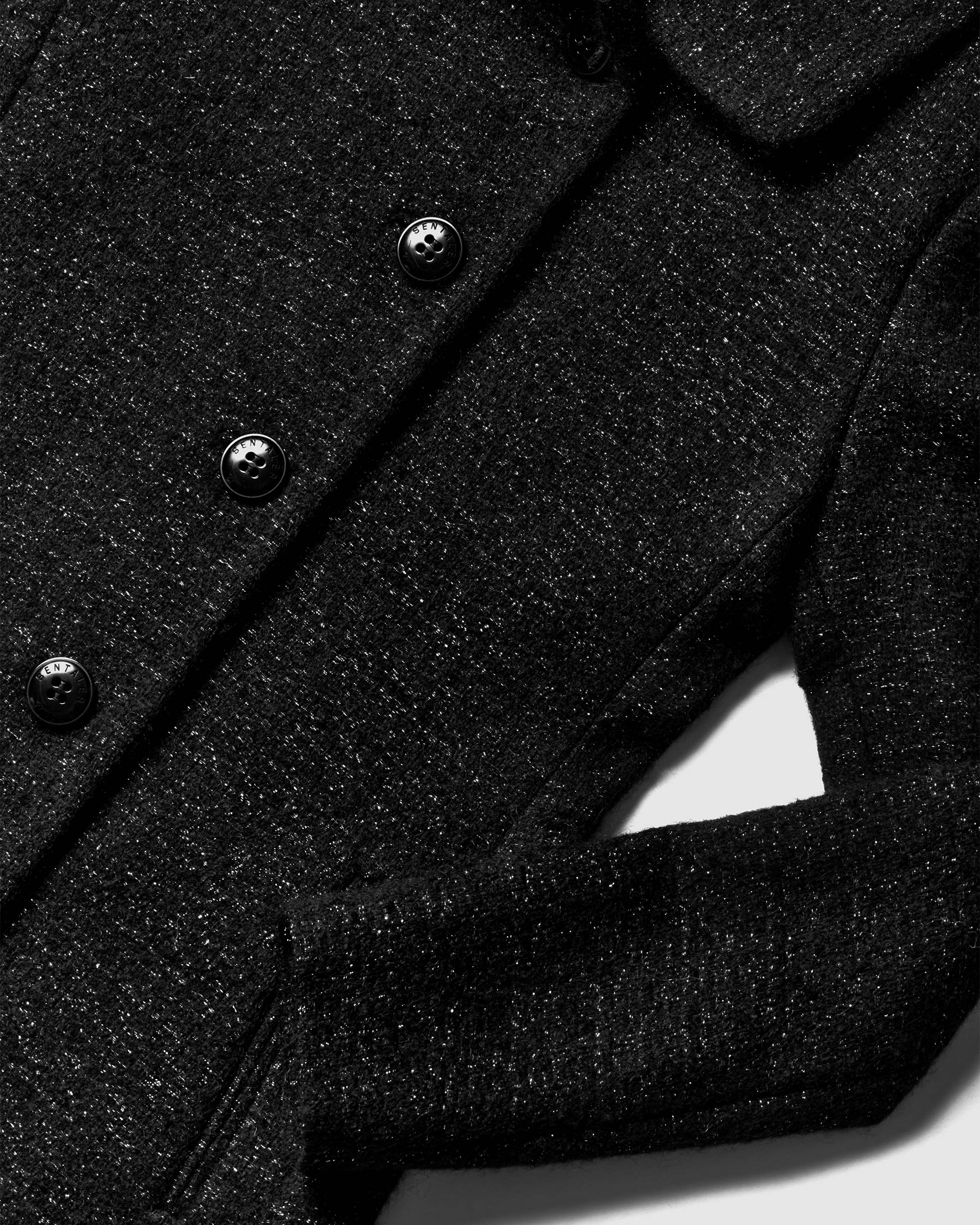 This product is crafted from SENTALER's first-ever Glittered Alpaca Tweed, a new ultra-lightweight fabric made from exclusive Alpaca fibers. SENTALER's limited edition Alpaca Tweed fabrics add sophisticated flair to every look with its luxurious and textured soft feel.
